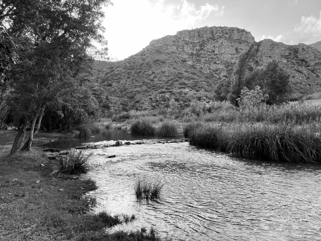 Me gustó haceros esta foto furtiva el otro día… Paseábamos por Gestalgar con Alfons y Oscar maravillados por la fuerza del agua. Yo encontraba rastros por todas partes de lo que estaba buscando: desde el pan al teatro, a la pasión por describir las fuentes de energía, al río, a «Claudio mira» que es tu libro favorito de Alfons porque va de hermanos que no se abandonan.