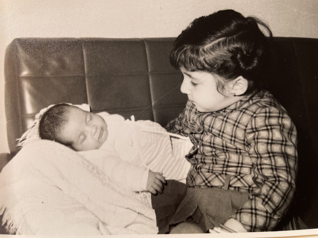 Eva hoy es tu cumpleaños y lo celebro mirando esta foto en la que tú eras una recién nacida y yo una hermana mayor que estrenaba ese papel. No tengo idea de lo que pensé en ese instante pero hoy esta imagen me produce una ternura inmensa. También me hace consciente de los miles de días pisados juntas desde ese momento hasta hoy, cincuenta y tres años después.