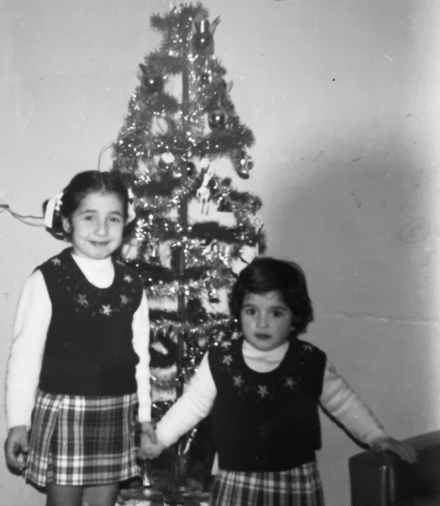 Eva, he encontrado esta foto y me he dado cuenta de que en ella aparecen varios objetos que siguen en mi casa adornando la Navidad. Son una bota de Papá Noel y una campana que colgaban de ese árbol que teníamos detrás cuando éramos niñas. He pensado en el tiempo que me acompañan y he dudado de si son los objetos los que se quedan con nosotras o somos nosotras quienes no conseguimos desprendernos de ellos porque son la piel de nuestra memoria y si los perdemos se abre una herida.