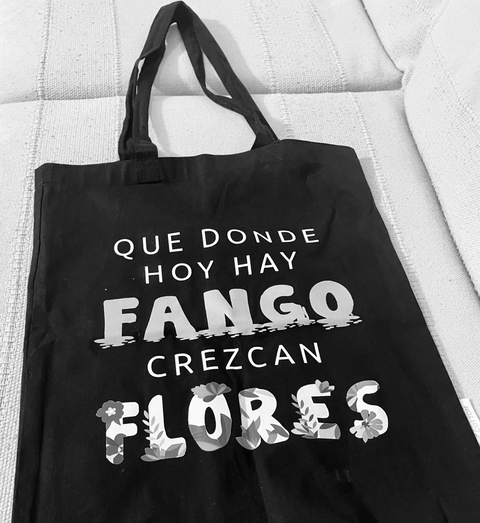 Traté de aparcar ese destino genético que nos acecha. Intenté aplacar la inquietud con lecturas. Pensé en el cáncer lo menos posible y a ratos me maldije por haber hablado contigo demasiadas veces de ello. Se me antojó que deberíamos dedicar nuestro tiempo a hacer cabañas como yayabushcraft en lugar de darle tantas vueltas a la vejez y a la enfermedad. Me brotaron los dos verbos que te salvaron cuando te separaste de Gerardo: enfriar y apoquinar. Y congelé mi miedo para sacarlo de dentro sin que lo enfangara todo. Luego sequé mi cuerpo con trapos pintados de esperanza y de proyectos vitales. Y así hasta que unas horas antes de que se desvaneciera la incertidumbre, en la mesa de mi trabajo apareció la bolsa que ilustra este post. Me la enviaba mi querida amiga Charo con una preciosa carta. Su regalo me demostró que las casualidades no existen.