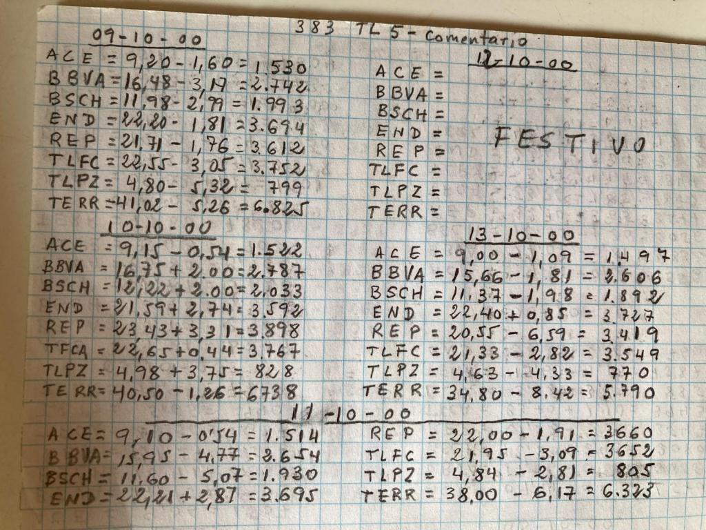 Seguramente para que le quiera papá estos días cuando he ido a verle a la residencia, me ha pedido una libreta y un boli. Le llevé una cualquiera y sin embargo, al abrirla, los dos convinimos que era una obra de arte. Varias hojas con unos números perfectamente escritos se dispusieron ante nuestros ojos, maravillándonos. Se trataba de la cotización de unas acciones que papá tuvo durante poquísimos años de su vida cuando también disfrutó de barquito a motor. El efecto Solchaga del enriquecimiento simulado, en este insólito país, facilitó a alguna gente un comportamiento de nuevo rico.